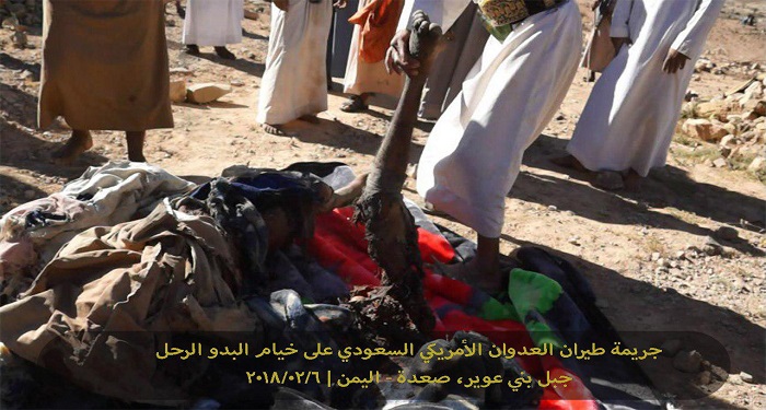 وفي محافظة صعدة استهدف طيران التحالف خيام البدو الرحل وأوقع قتيلاً وجريحاً منهم.