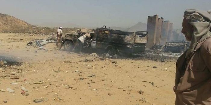 وأفادت السلطات المحلية في المحافظة أن طيران التحالف استهدف سيارة مواطن في سوق حضاض الواقع في مديرية بكيل المير.