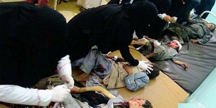 وسقط أكثر من 125 شهيداً وجريحاً معظمهم من الأطفال، اليوم الخميس، في محافظة صعدة جراء استهداف الطيران حافلة تقل طلاباً أثناء مرورها وسط سوق شعبي، في مجزرة اعتبرها التحالف السعودي متوافقة مع القانون الإنساني الدولي.
