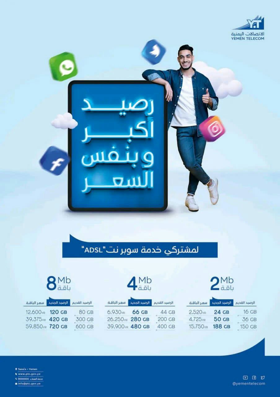 وأوضح وزير الاتصالات وتقنية المعلومات رئيس مجلس إدارة المؤسسة المهندس مسفر النمير أن العروض والتخفيضات تأتي تنفيذاً لتوجيهات فخامة المشير الركن مهدي المشاط رئيس المجلس السياسي الأعلى، وانطلاقاً من استراتيجية المؤسسة القائمة على التوجه نحو الاهتمام بالعملاء.