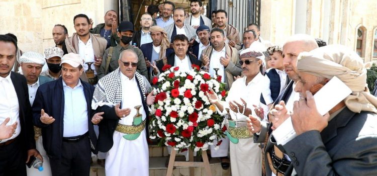 إلى ذلك وضع عضوا السياسي الأعلى ورئيس لجنة الشؤون الاجتماعية بمحلي الأمانة، إكليلا من الزهور على أرواح شهداء مجزرة الصالة الكبرى، وقرأوا الفاتحة على أرواحهم.