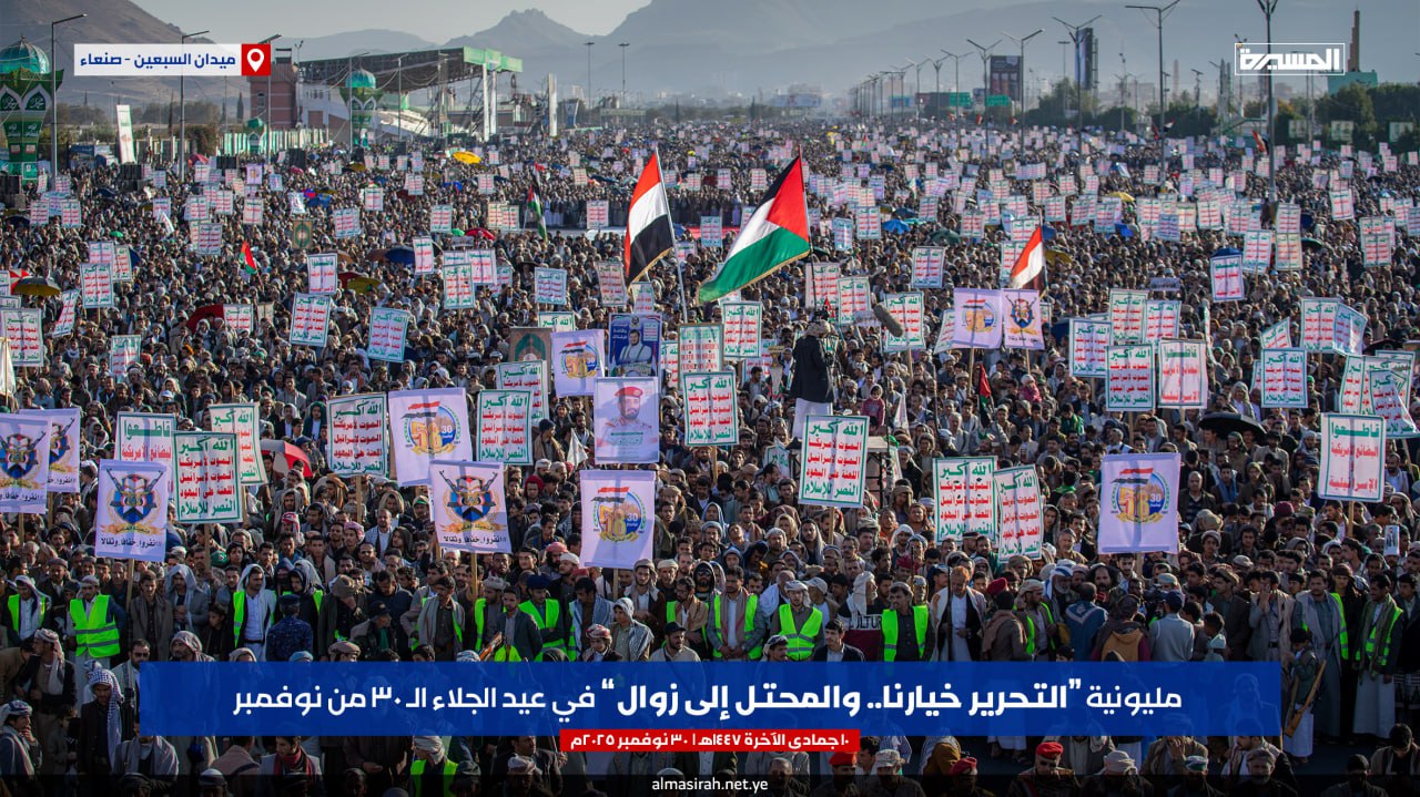 يعد الاحتشاد في ميدان السبعين عصر الأحد من أكبر المسيرات اليمانية احياء لذكرى عيد الاستقلال وخروج آخر بريطاني من عدن في 30 نوفمبر عام 1967م، فالمسيرة التي جاءت تحت شعار “التحرير خيارنا.. والمحتل إلى زوال”، حملت الكثير من الرسائل والدلالات.