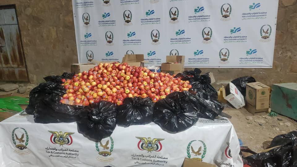 وأوضح مدير مركز الراهدة الجمركي محمد رشاد الجبري أن الكمية المضبوطة بلغت (35) كرتوناً من فاكهة التفاح الخارجي الممنوع، جرى ضبطها على متن شاحنة نوع (دينا) ميتسوبيشي فوزو في منطقة الراهدة – سامع أثناء توجهها إلى مدينة تعز، في مخالفة صريحة للقوانين واللوائح الجمركية النافذة.