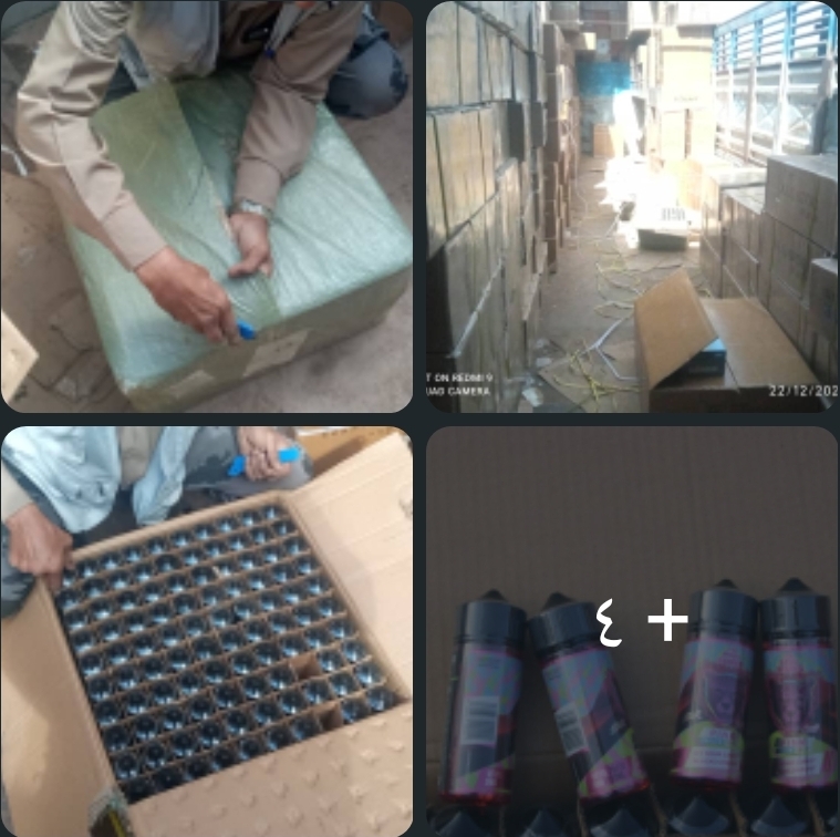 تمكّن مركز الراهدة الجمركي، يوم الخميس الفائت، وبمشاركة فاعلة من الضابطة الجمركية وبالتعاون مع الأجهزة ذات العلاقة، من ضبط شحنتين تحتويان على أدوات شيش وسوائل شيش إلكترونية ممنوعة، وذلك أثناء إجراءات المعاينة والتفتيش الروتيني، استنادًا إلى أحكام قانون الجمارك رقم (14) لسنة 1990م وتعديلاته.