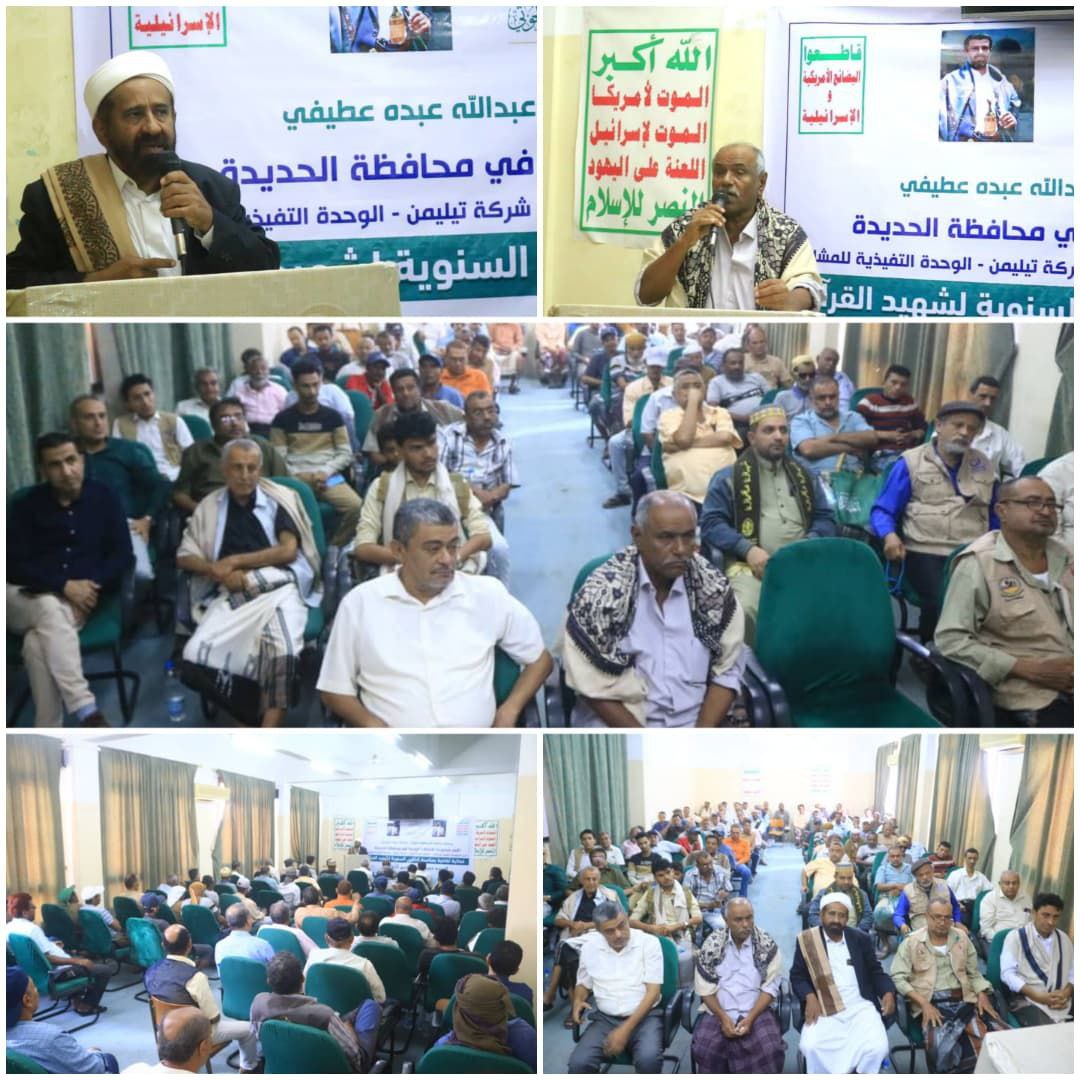 وفي الفعالية، التي حضرها مدراء مؤسسة الاتصالات علي هبة مكي، وبريد الحديدة حسين حبيب، وشركة تيليمن وليد الغيلي، تطرق مسؤول وحدة العلماء والمتعلمين بالمحافظة الشيخ علي صومل، إلى مناقب ومحطات الشهيد القائد وفكره القرآني، وما تميز به من الفهم الصحيح لقضايا الأمة المصيرية.