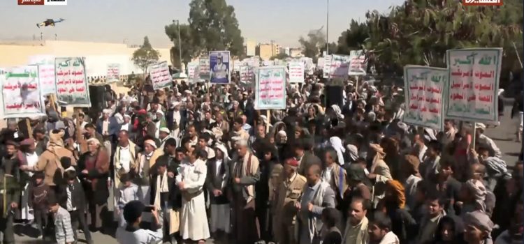 شهدت العاصمة صنعاء اليوم الأربعاء، خروج مسيرة جماهيرية حاشدة أمام مبنى السفارة الأمريكية، احتفالاً بذكرى الحادي عشر من فبراير، اليوم الذي يُخلّد خروج قوات المارينز الأمريكي من اليمن في مشهد وُصف بالخروج المذل بعد سنوات من التدخل والوصاية.