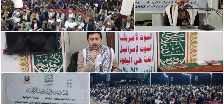 نظمت في عدد من المحافظات ومديرياتها الثلاثاء ندوات وأمسيات ثقافية إحياءً لذكرى استشهاد الإمام علي عليه السلام، وتجديداً للولاء لله ورسوله وللإمام علي عليه السلام، مؤكدة أن إرتباط أهل اليمن بوصي رسول الله هو ارتباط إيماني وجداني تمتد جذوره إلى فجر الإسلام، حين كان لليمنيين الشرف الأكبر في مناصرة الحق وإعلاء راية الدين