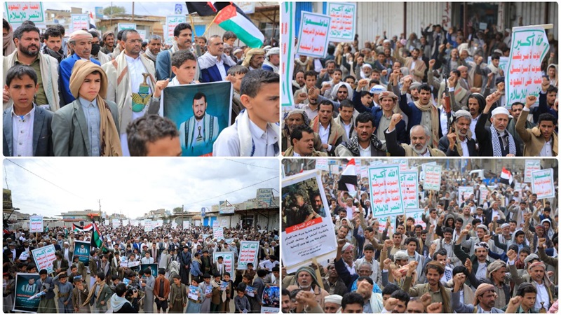 وفي المسيرة التي أقيمت في مسرح جريمة العدوان الأمريكي السعودي بحق حافلة طلاب ضحيان، عبر المشاركون عن الفخر والاعتزاز بالصمود اليمني العظيم في مواجهة تحالفات العدوان الأمريكي والسعودي والإسرائيلي.