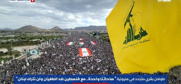 الحشد المليوني الذي حمل شعار “ساحاتنا واحدة.. مع فلسطين ضد الطغيان ولن نترك لبنان”، توشّح بالأعلام العملاقة، فكان العلم الفلسطيني في قلب الحشود تأكيداً على مركزية القضية، وعلى جانبيه علما إيران والعراق، في رسالةٍ تؤكد واحدية المعركة والمصير، فيما العلم اللبناني كان متصدراً الحشود والأعلام، ليؤكد أحرار اليمن أن لبنان لن يكون بمفرده في مواجهة العدو، وأن خلفه ساحات المحور، وفي طليعتها الجبهة اليمنية التي باتت تفرض على الأساطيل الأمريكية قوانين بحرية لا تجرؤ واشنطن على تجاوزها.